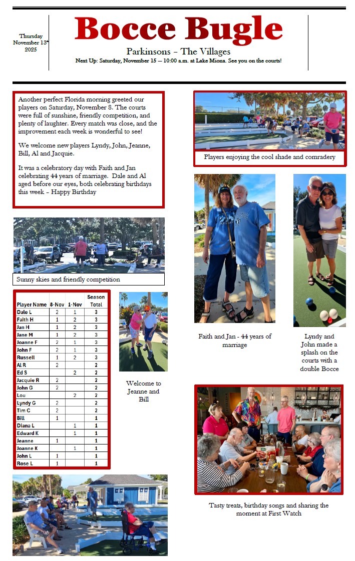 There may be no better place for someone with Parkinson’s disease (PD) to live than in or nearby The Villages, Florida. With 17 PD support groups, a PD Center of Excellence nearby, two hospitals minutes away, all of the medical specialists needed to manage the disease, and an active community with plenty of exercise and social opportunities, what more might one want? Of course, Florida also has great weather!