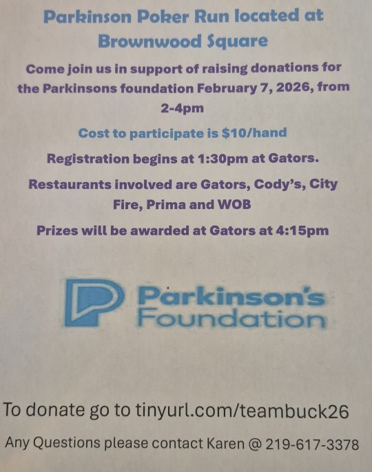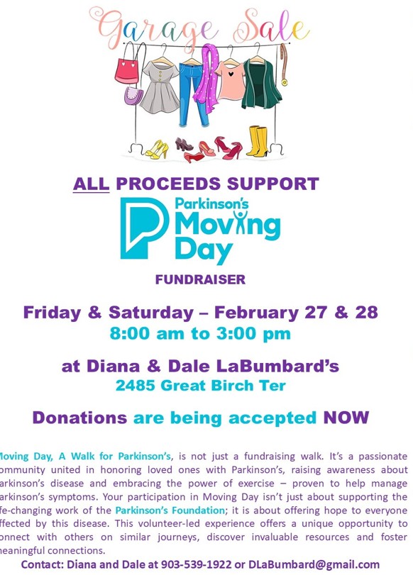 Saturday, February 7th, 2026 there will be a virtual Parkinson’s Foundation symposium and potluck at Mulberry Grove Recreation Center from 10 am -1:30 pm. Speakers include Dr. Michael Okun.